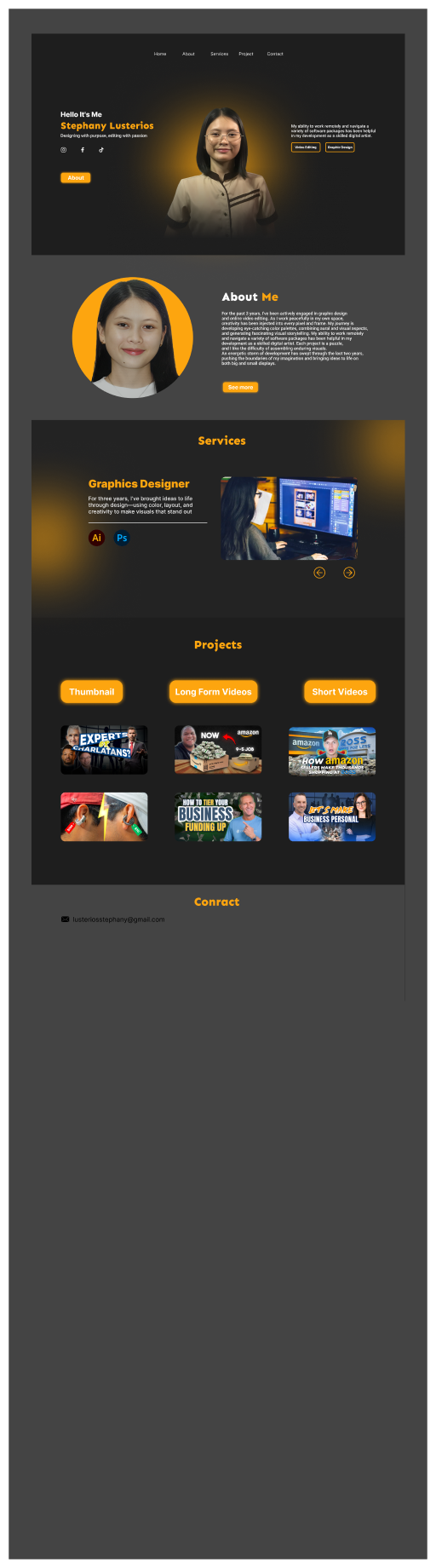 Hello It's Me CLICK TO VIEW SPECIFIC PARTS OF THIS PORTFOLIO Instagram/Tiktok VideosYoutube VideosGraphics DesignJAY MARK DAPLINVIDEO EDITOR, GRAPHIC DESIGNERWith more than 4 years of experience working as a Video Editor, I'm confident I can help you grow your personal and business through quality edits.
